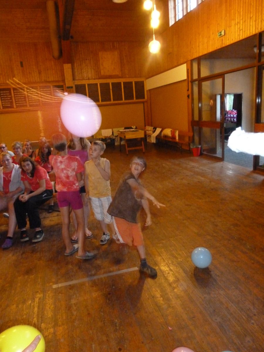 Los ging es mit einem leichten Einstieg, dachten wir: Luftballon werfen. Auf einem Stab war eine Nadel befestigt,