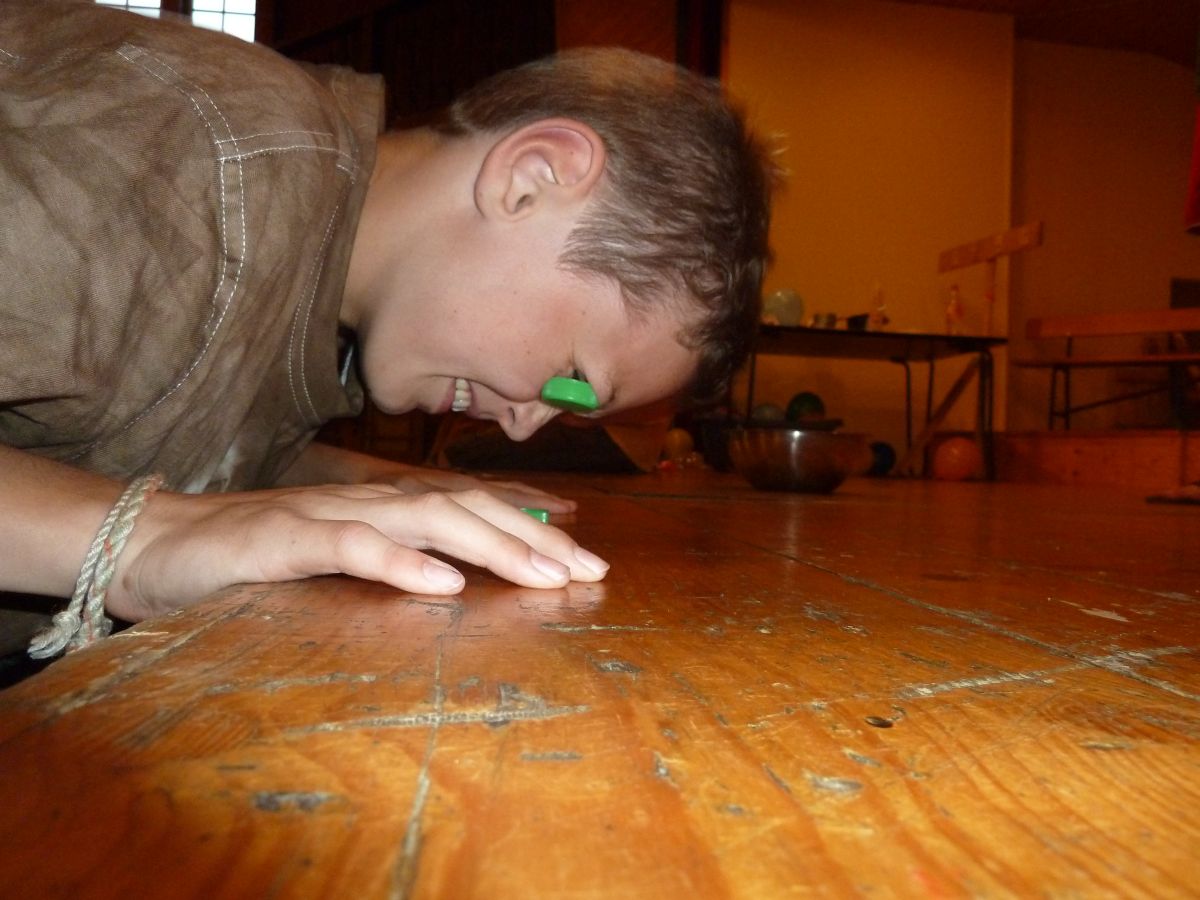 Mit Augenmaß musste man in der Disziplin "Mikroskop" punkten: Es galt, Flaschendeckel mit den Augenmuskeln