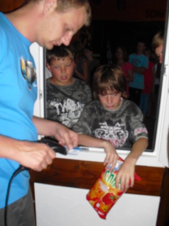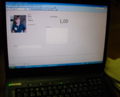 Wir haben, als erstes Ferienlager überhaupt, ein vollautomatisches Barcodebezahlsystem in unserem Lageraldi eingeführt. Zurzeit läuft noch die Beta-Testphase in der die Kinderkrankheiten behoben werden. Flaume hat sich in tagelanger Heimarbeit etliche Nächte und Wochenenden um die Ohren geschlagen und exclusiv für uns diese Bezahlsoftware geschrieben.