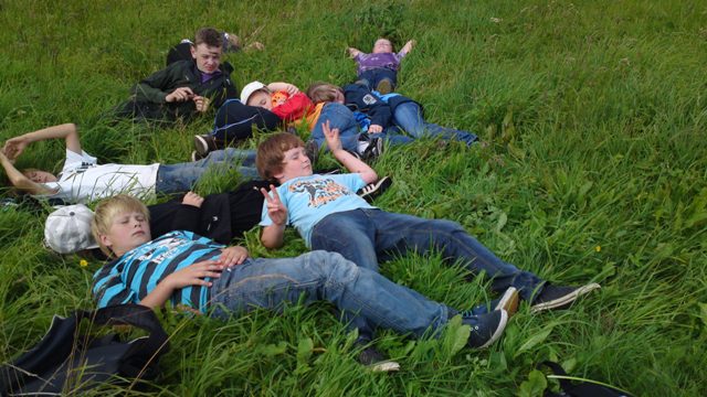 Zweifel kamen erst auf, als hinter dem mittlerweile mannshohem Gras der Weg an einem Weidezaun endete. Da mussten wir doch einsehen, dass wir irgendwo verkehrt abgebogen sind. Aber immerhin hatten wir so ein schönes Plätzchen gefunden, was zum kurzen rasten einlud. Während Marco damit beschäftigt war herauszufinden wo wir nun gelandet sind legten sich die anderen schön ins Gras und genossen die Aussicht!