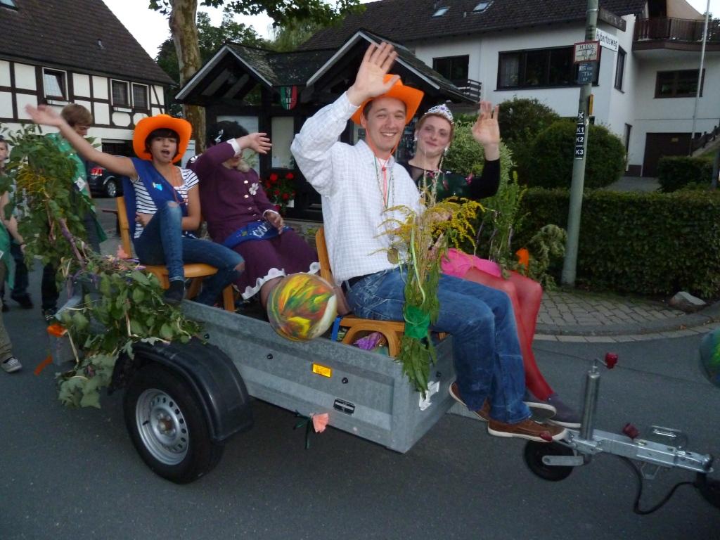 die toll geschmückte Königskutsche der alle Kinder uns Leiter folgten. Der anschließende Königsball
