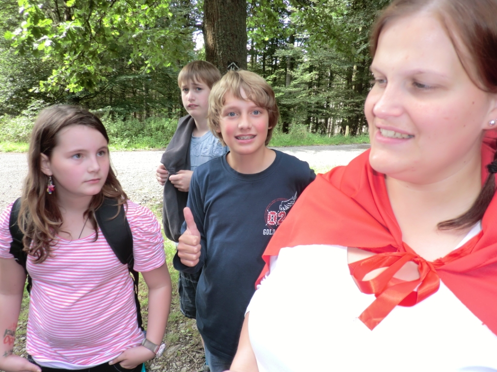 Am Tag 3 stand das Leitersuchspiel auf dem Programm.Wir mussten eine Banane, Rotkäpchen, Hans-Sippel der Forster, einen Bär suchen.